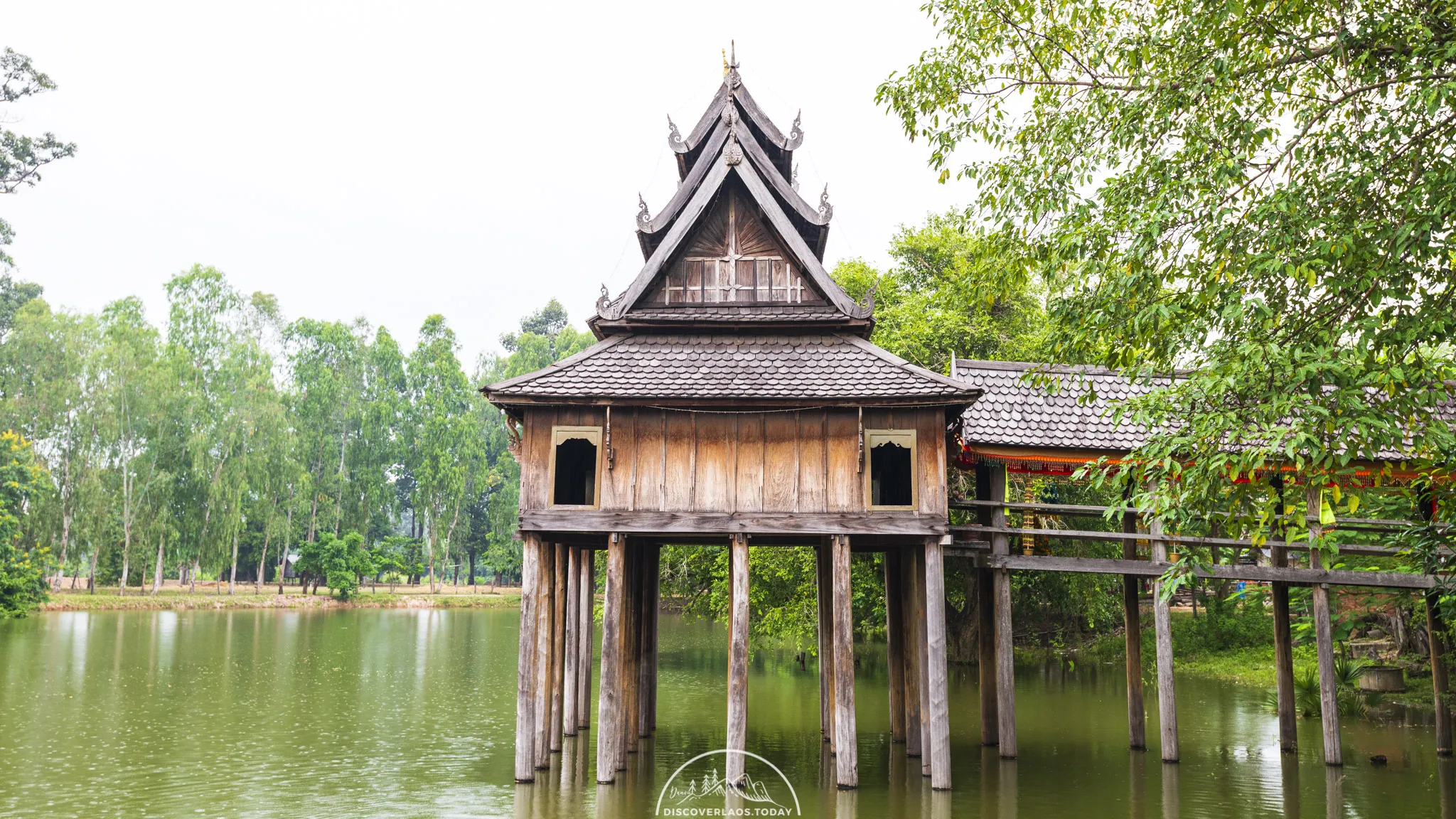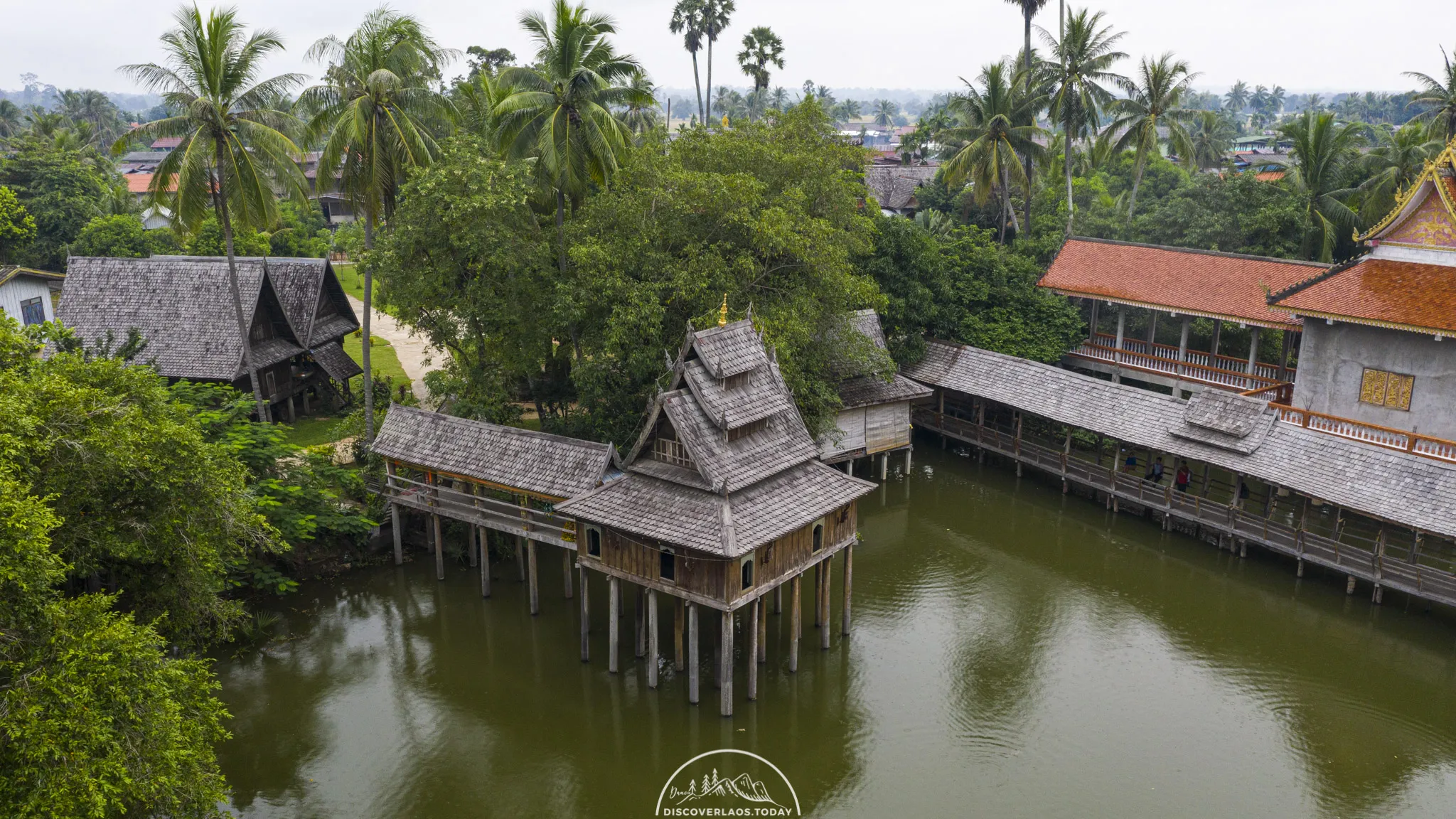 Ho Tay Pidok Library (Ancient Buddhist Scripts Library): The wooden library over the lake is known as Hotay Pidok and is a respository of 4,000 palm leaf manuscripts containing 361 different Buddhist scriptures written in three different languages: Burmese Pali, Khmer and ancient Lao. The oldest of the scriptures were written in the 16th century, while the structure housing them all dates back to the 17th century. There have been numerous restorations of the building over the years. Due to the large number of palm leaf books kept here, it is considered one of the most important collections in all of Laos. Because of the importance of these manuscripts and the fragility of the wooden structure that houses them, they may be moved to the more modern library upon its completion.