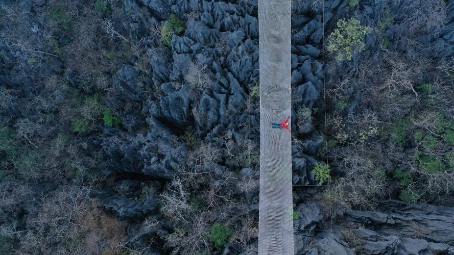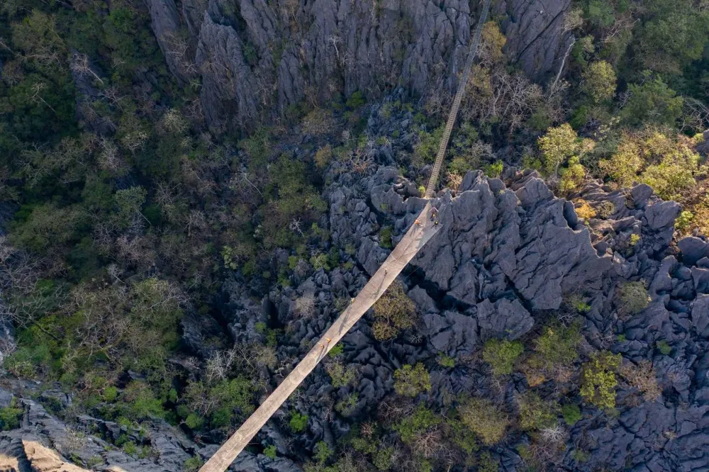 Walk across an astounding 80 m length of a Suspended Bridge which is at approximately 435 m high above the sea level.