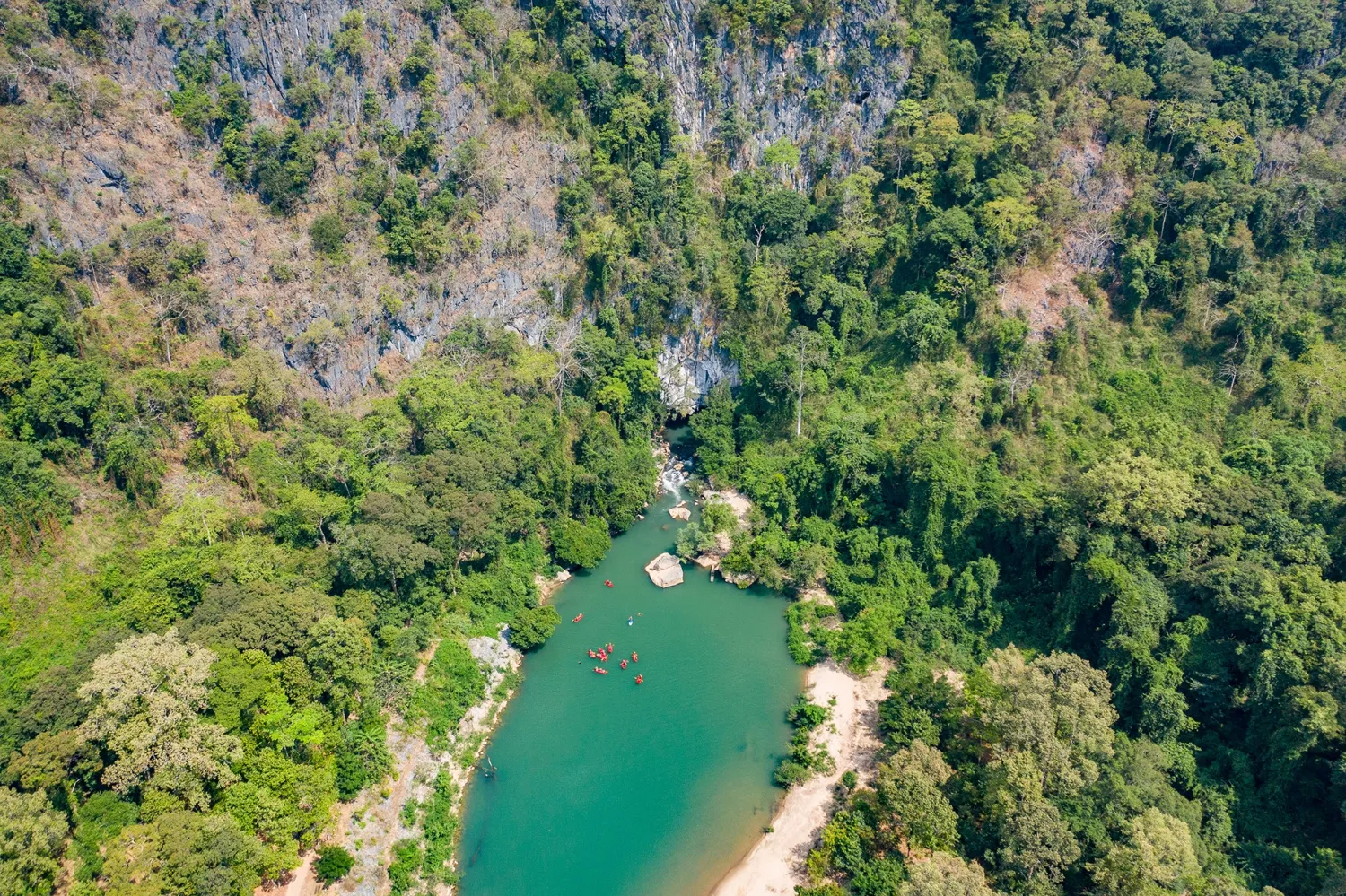 After our lunch, we start kayaking through and enjoy swimming at blue lagoon in front the cave, we will return to Phou Pha Marn before sunset.