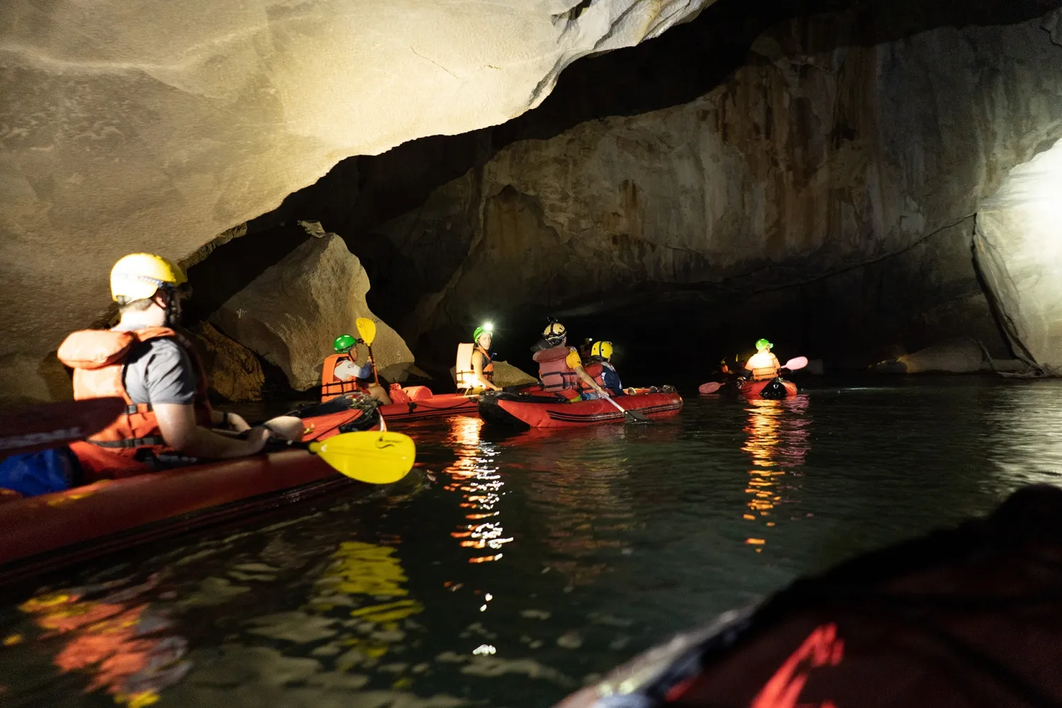 - Kayaking through the cave is not very technical but is done in areas of complete darkness.