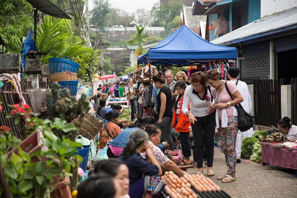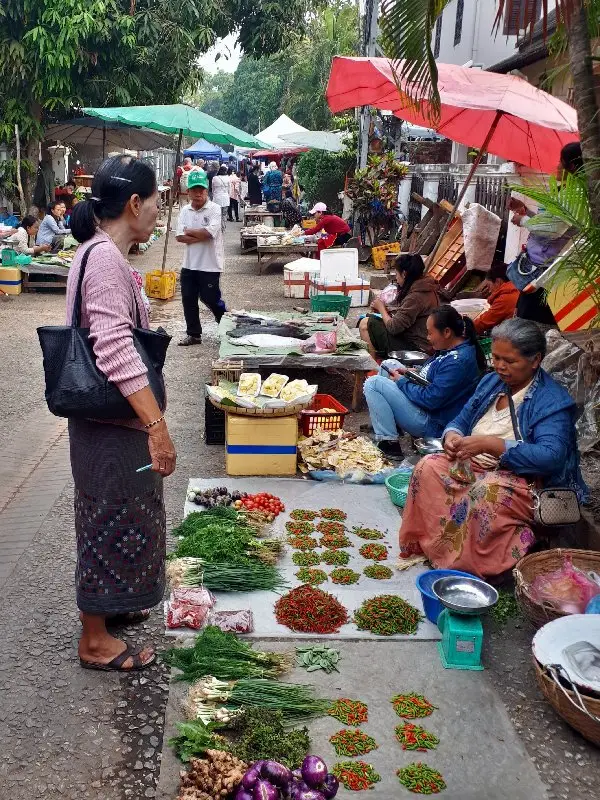 Morning Market & Food Tasting – Explore Luang Prabang’s vibrant market, sample local delicacies, and discover traditional ingredients.