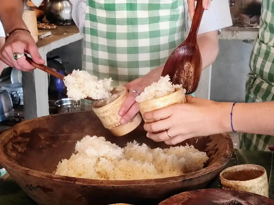 Next, head to a traditional cooking class in a serene setting, where you’ll prepare classic Lao dishes using clay pots—a unique and time-honored cooking method. Guided by expert chefs, discover the secrets of Lao cuisine as you craft your own flavorful creations, from fragrant curries to aromatic soups.